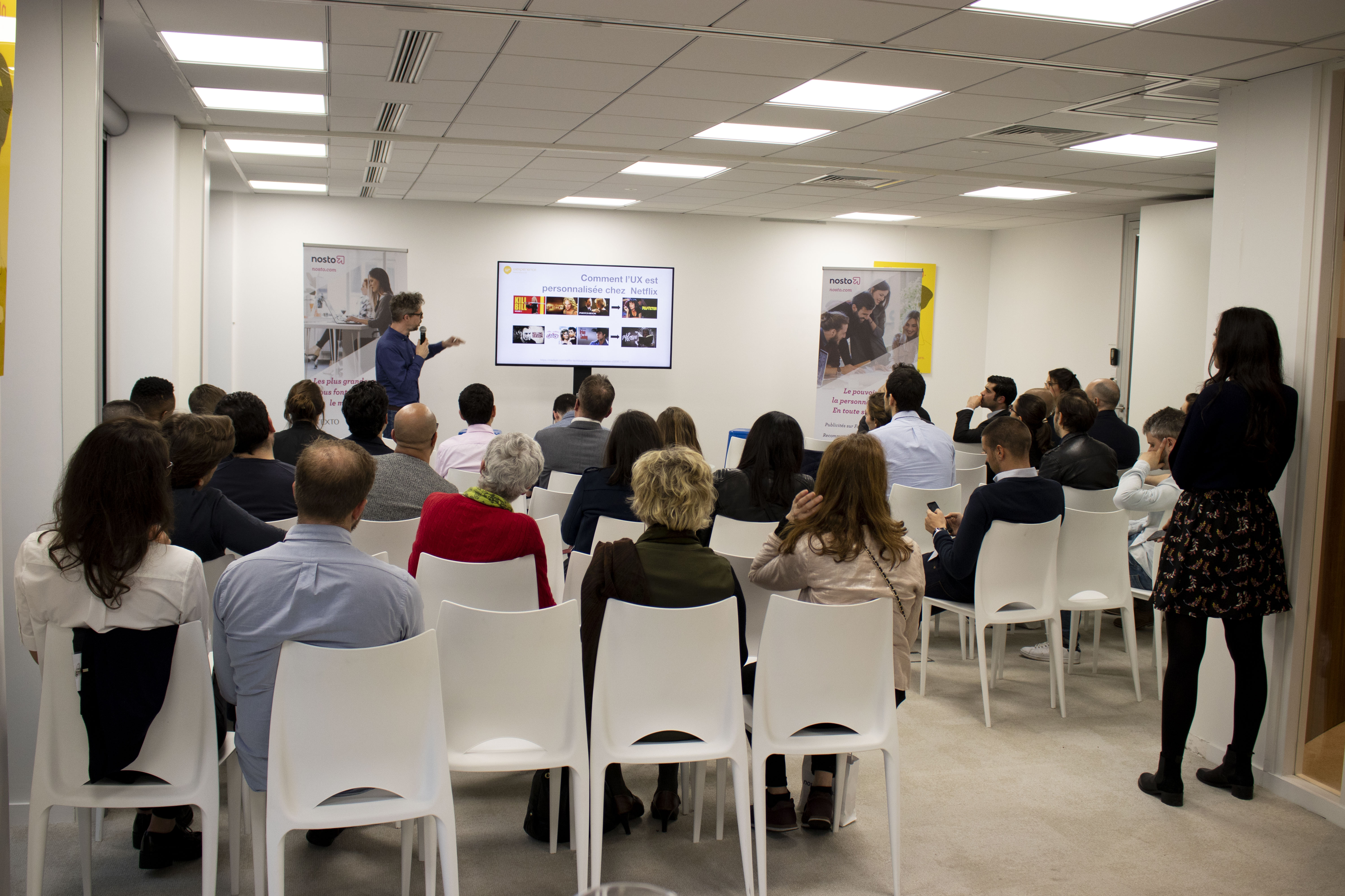 Our Head of Business Development in France, François Bouquet (pictured above), presented Nosto’s features to our audience. Our Product Manager, Romain Sassareu, then announced two of our most exciting upcoming features: customer segmentation and personalized content. Together, these features will enable online retailers to better identify and segment shopper personas – making it easier to deliver more relevant content to consumers.