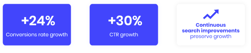 - Since then, the results only kept growing, followed by the 30% growth of CTR from site search one year after the solution was launched live.